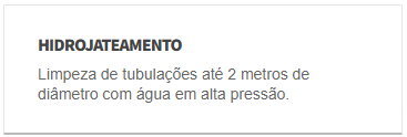 Caminhão combinado com bombas de hidrojateamento e auto vácuo. Utilizado para desobstrução de galerias, bueiros, bocas de lobo, caixas de gordura, tubulações de esgoto de até 2 metros de diâmetro e limpeza de fossa. Serviços de hidrojateamento com solução eficaz.